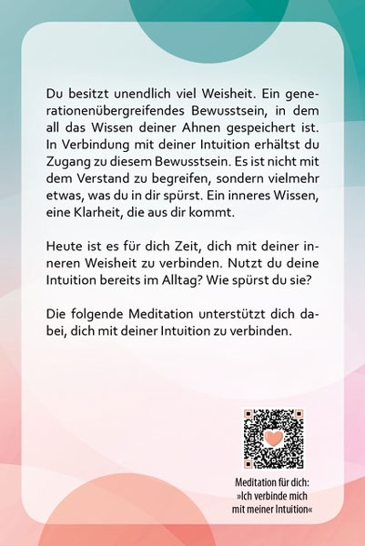 Dieses Kartenset begleitet dich mit 40 Karten – jede davon schenkt dir eine Affirmation, eine liebevolle Erinnerung, eine Frage, eine Übung oder einen neuen Blick. Manche Impulse kannst du dir sogar als geführte Meditation per QR-Code anhören – für tiefe Prozesse, wann immer du möchtest.