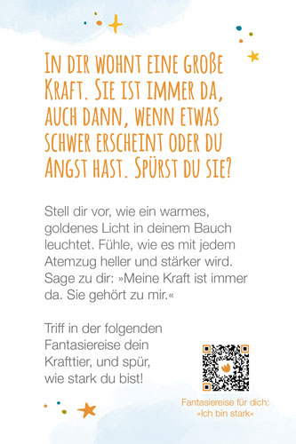 Das Besondere an diesem Set: kostenfreie Übungen und Fantasiereisen als Audio über QR-Code auf den Kartenrückseiten!