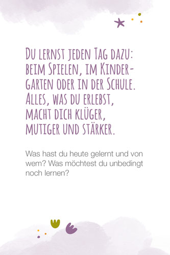 Neue Affirmationen, weitere Lieblingsrituale und kurze, wertvolle Übungen, die Kinder beim Großwerden unterstützen.